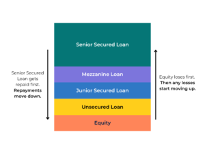 A junior secured loan would sit above the equity of the business. This can be the first exposure of losses, with the highest interest rate.
